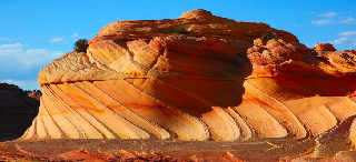 In Arizona, near the border with Utah, in the United States, you can find a stunning sandstone rock formation called The Wave. The Wave is on the slopes of the Coyote Buttes, which are in turn located in the Paria Canyon-Vermilion Cliffs Wilderness, on the Colorado Plateau. This formation is actually sand dunes calcified in vertical and horizontal layers, and the fascinating color bands are iron oxides, hematite, and goethite. The Jurassic-age Navajo sandstone making up The Wave is estimated to be 190 million years old. Getting to The Wave requires a moderately difficult 3 mile hike from the Wire Pass Trailhead. Due to the delicate nature of this formation, visitors must arrange a day permit in advance and pay a $7 fee per person. Only 20 of the highly sought-after permits are issued for each day. More info on permits can be found on the Bureau of Land Management website. Camping is not allowed in the permit area, and the closest accommodation can be found in the small towns of Kanab, Utah and Page, Arizona.